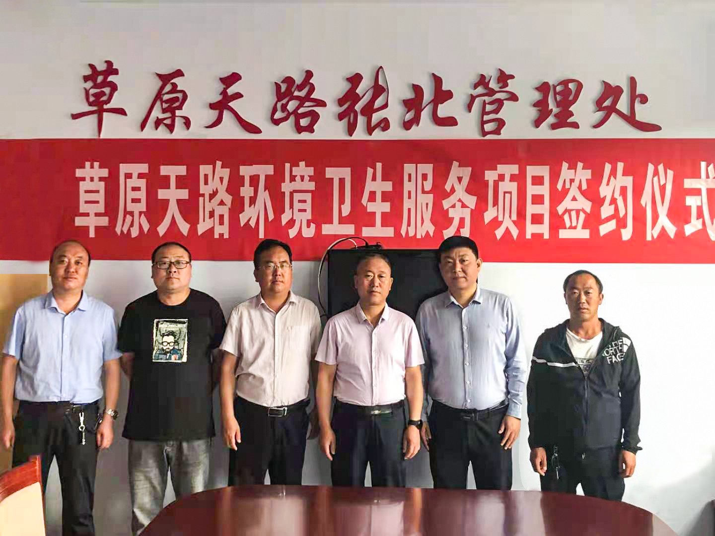 2021年6月9日,张北天楹环境服务有限公司再次中标草原天路张北段环境卫生项目,6月10日,正式签约仪式在草原天路张北管理处二楼会议室举行。