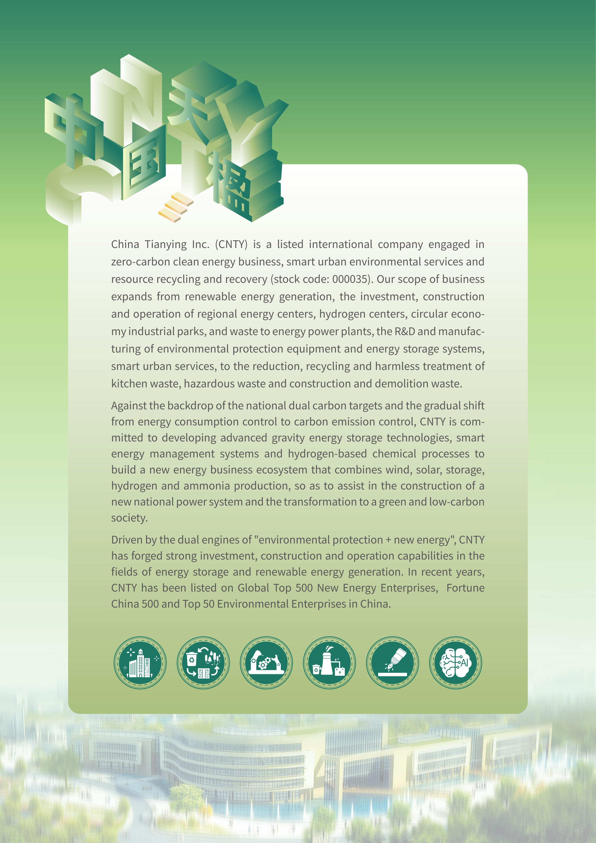 CNTY owns the cutting-edge plasma technology, grate incinerator technology, and the latest disposal methods to treat construction waste, food waste and waste oil among other waste.