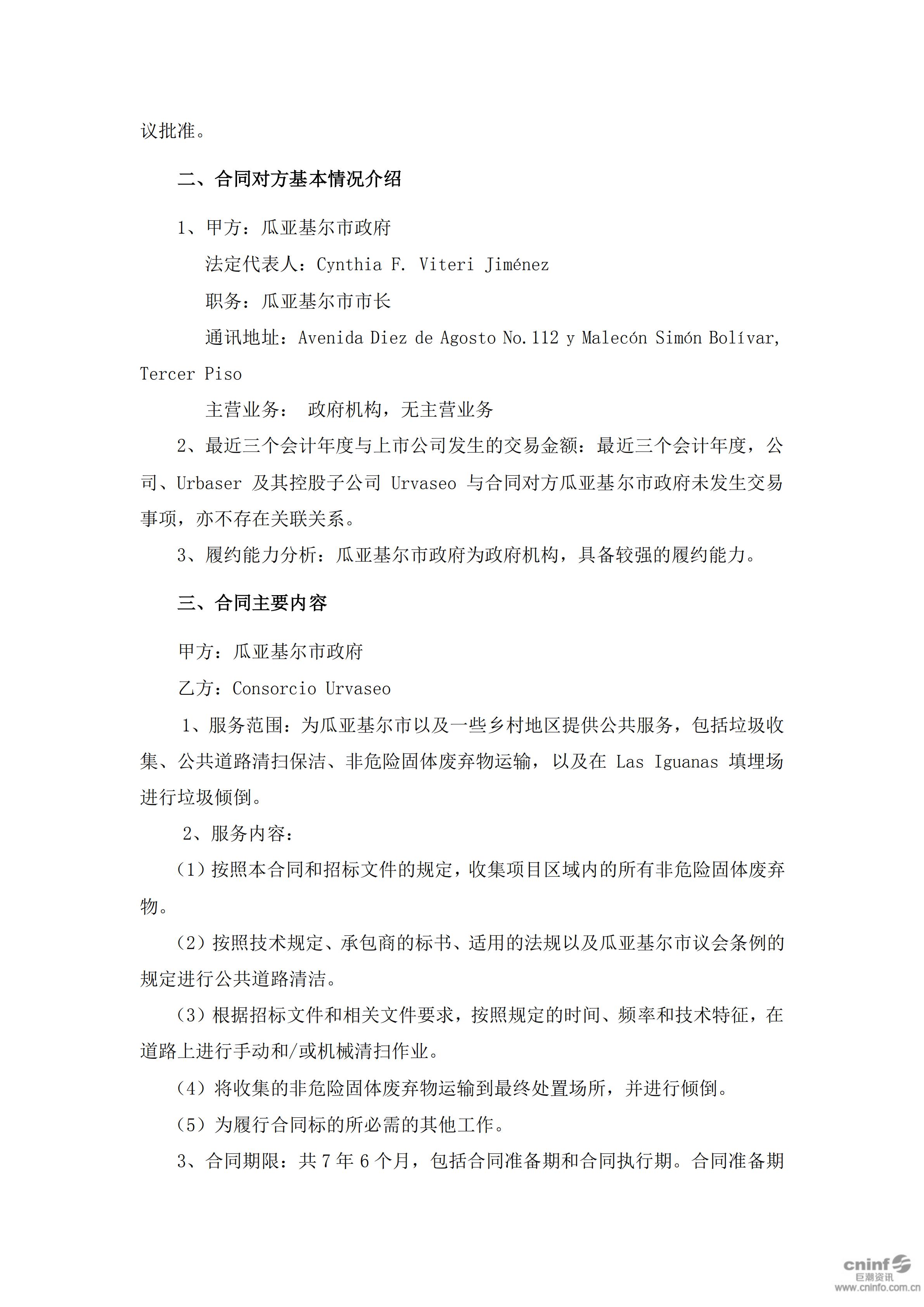 蓝月亮料免资料大全关于签署瓜亚基尔市垃圾收集与道路清扫项目合同的公告
